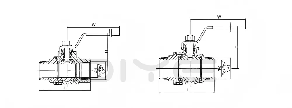 2PC ruostumattomasta teräksestä valmistettua palloventtiiliä, jossa on uros-naaraskierteet, massatuottaja China DIYE VALVE, käytetään pääasiassa väliaineiden, kuten veden, höyryn, öljytuotteiden, paineilman, maakaasun, heikon hapon, heikon alkalin ja puhtaiden nesteiden, on-off-ohjaukseen. Sitä käytetään laajalti sellaisilla aloilla kuin vesihuolto ja viemäröinti, LVI, vedenkäsittely, lääketeollisuus, kemiantekniikka, laivanrakennus ja teollisuusputkistot. Kaksiosaisen rakenteen ja uros-naaraskierreliitoksen ansiosta venttiilissä on helppo asennus ja purkaminen, luotettava tiivistyskyky, nopea avautuminen ja sulkeminen sekä alhainen virtausvastus, mikä tekee siitä sopivan erilaisten teollisuus- ja siviiliputkistojen on-off-ohjaukseen.